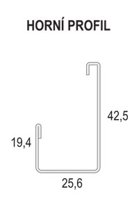 Oberes Profil: 42,5 mm x 25 mm x 19,4 mm; aus gewalztem und verzinktem Blech